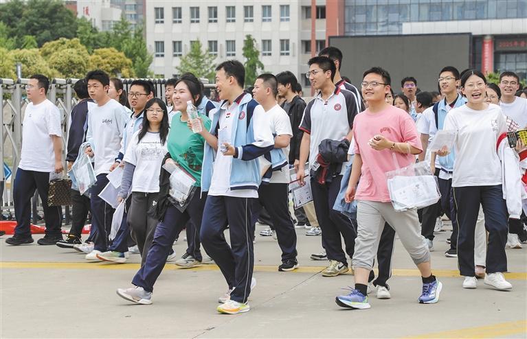参加完高考首日考试的考生走出咸阳市实验中学考点